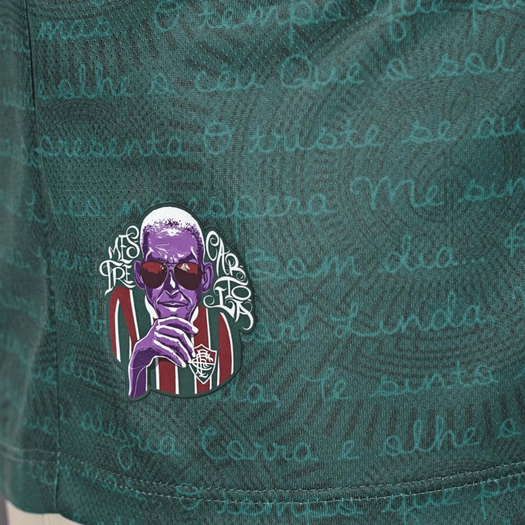 Vista a paixão tricolor! A Camisa do Fluminense Of 3 2023 traz homenagem a um torcedor ilustre, o cantor e compositor Cartola. A oficial 3 do Fluminense apresenta grafismos com manuscrito da música "Corra e Olhe o Céu", escrita e interpretada pelo artista. A peça tem design morcego, 100% poliéster, gola V e etiqueta na barra.